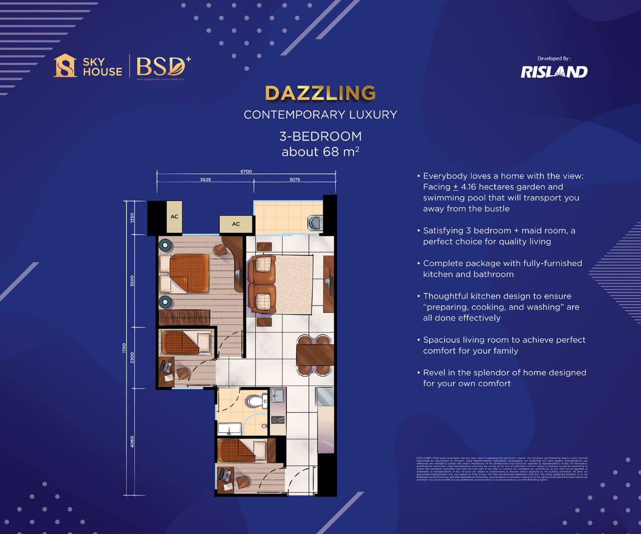 Berlokasi di jantung CBD BSD. Sky House BSD+ dibangun diatas lahan seluas 8.3 Ha dengan jumlah 11 tower yang terkoneksi langsung dengan AEON Mall BSD sebagai shopping center terbesar di BSD, dan juga dikelilingi lebih dari 10 Ofiice Tower sebagai penunjang nilai investasi di Kota BSD. Dengan fasilitas seluas 4.16Ha menjadikan BSD Skyhouse hunian ternyaman untuk anda dan keluarga. The Iconic 7 Layer Garden yang terhampar disekeliling Skyhouse BSD+ menjadikan kualitas hidup anda kian meningkat. Feel The Paradise at the New City.